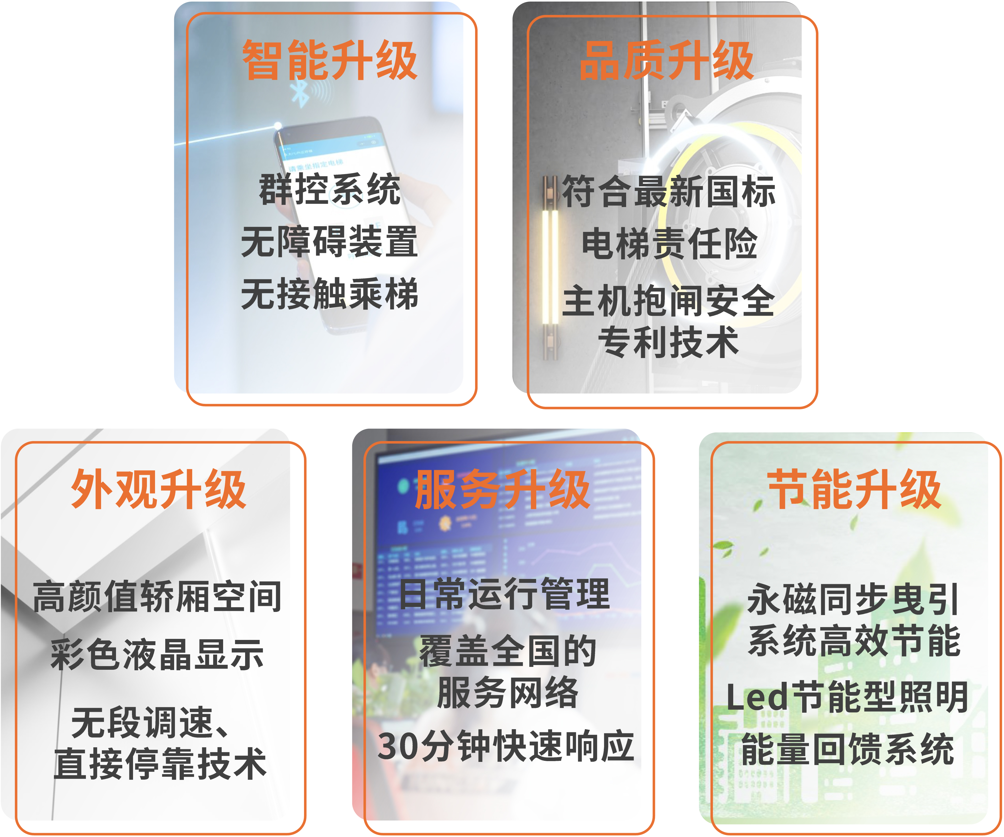 獨有安全專利、遠程監(jiān)測物聯網、365天*24h的客服中心隨時待命,為社區(qū)的日常乘梯安全默默守護